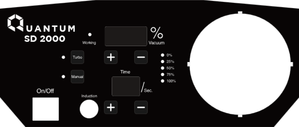 The Quantum SD-2000 Smoke Evacuator is equipped with a modern digital control panel designed for simplicity, precision, and efficiency during procedures. Key control features include:
